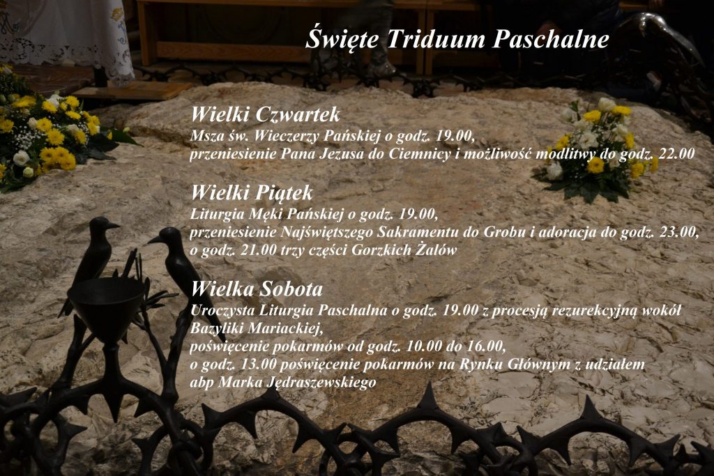 Zachęcamy do udziału w Świętym Triduum Paschalnym w Bazylice Mariackiej. Od czwartku do soboty Liturgia o godz. 19.00.